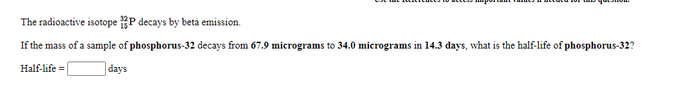 Years The radioactive isotope 3P decays by beta emission. Half life - Rn222.