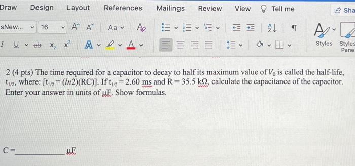 Solved Draw Design Layout References Mailings Review View Chegg Com